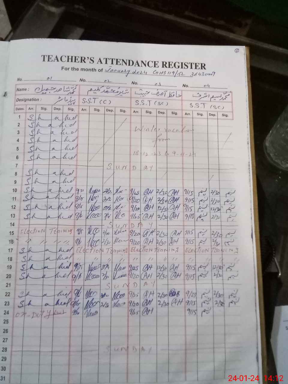 | Name: Sh**** Mu**** Ka**** Designation: (School Headmaster's/Headmistress's) SST (CS) Phone/Cell Number: 03**** |