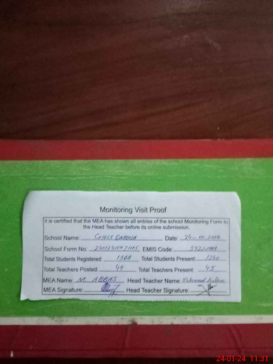 | EMIS Code: 39220001 | Name of School: GHSS QABOOLA | |||