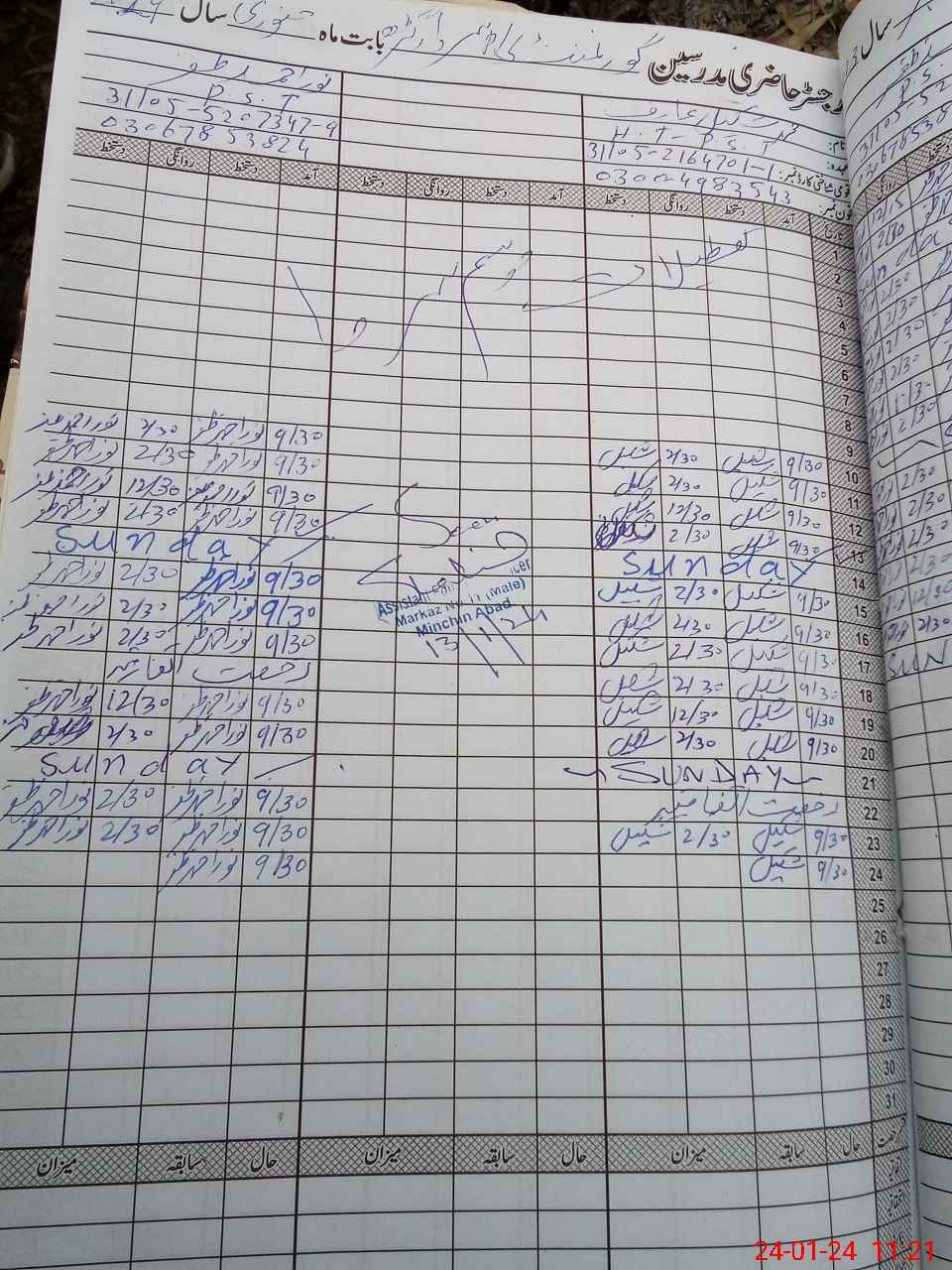 | CNIC | Full Name | Designation | R/C | Absence During Last Calender Month |