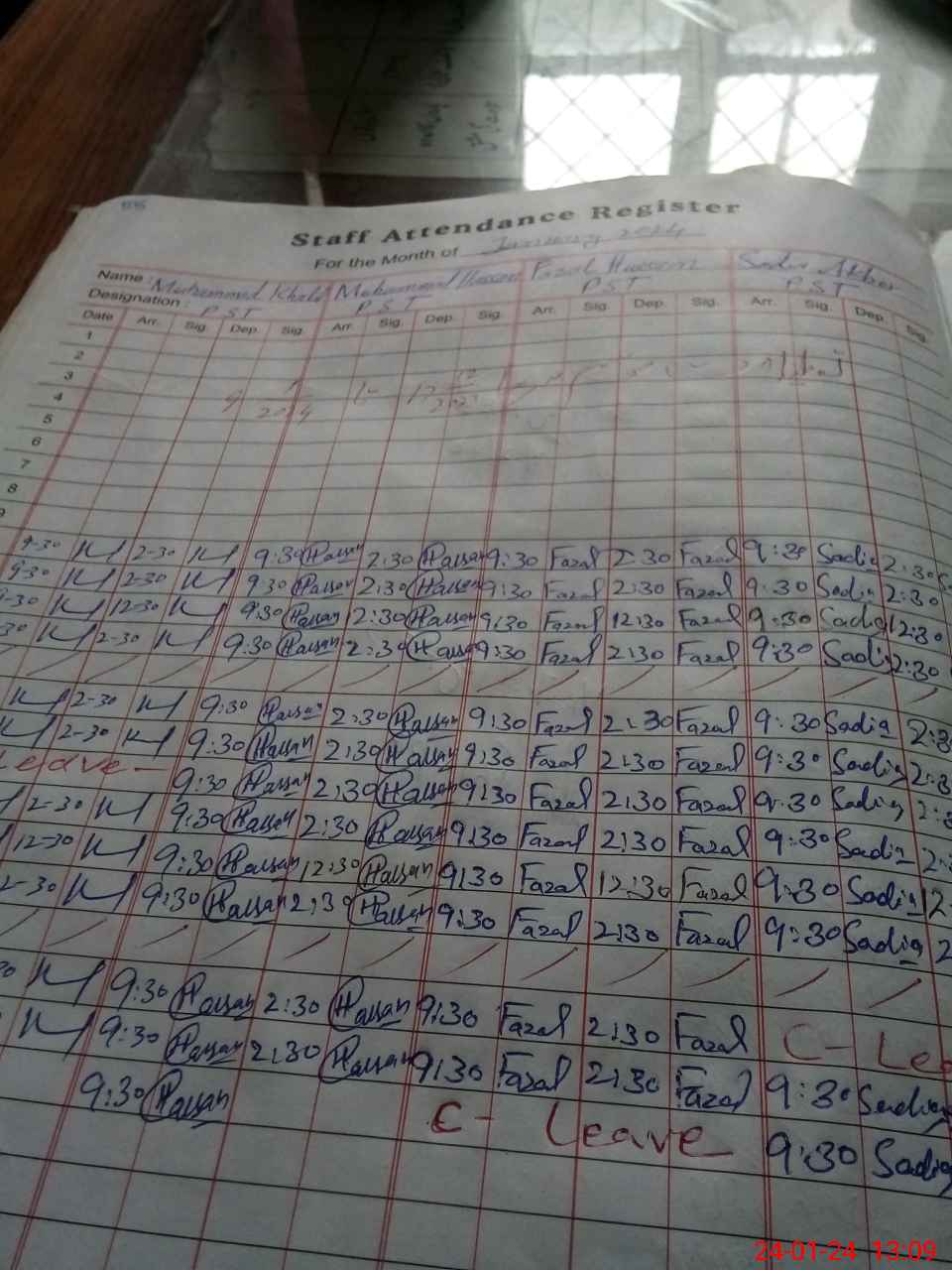 | CNIC | Full Name | Designation | R/C | Absence During Last Calender Month |