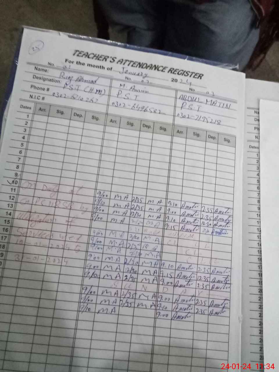 | Remarks (Use Separate Page if Required): Riaz Ahmad PST on attachment wef 10 january 2024 | |||||