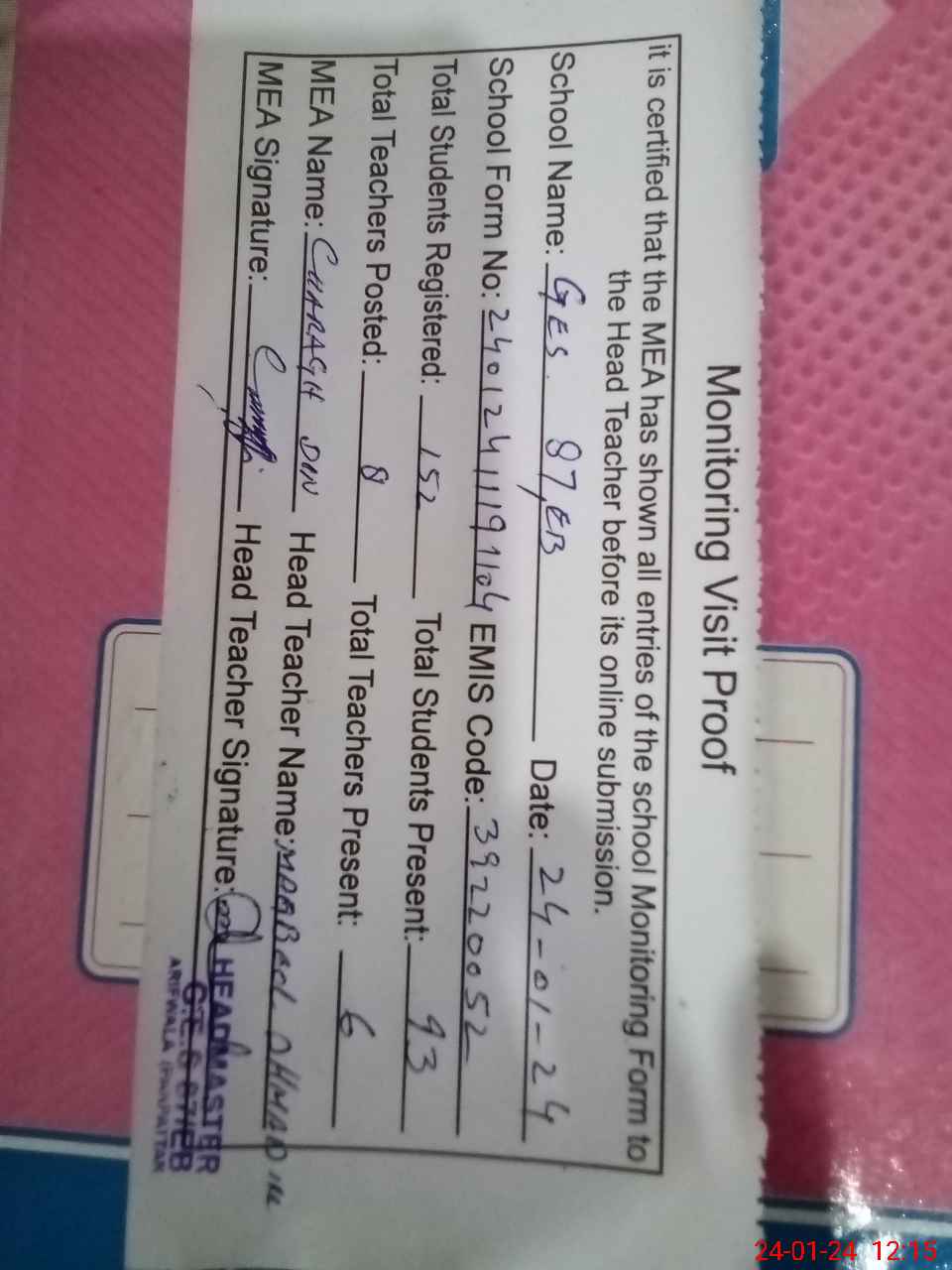 | EMIS Code: 39220052 | Name of School: GES 87 EB ARIFWALA | |||
