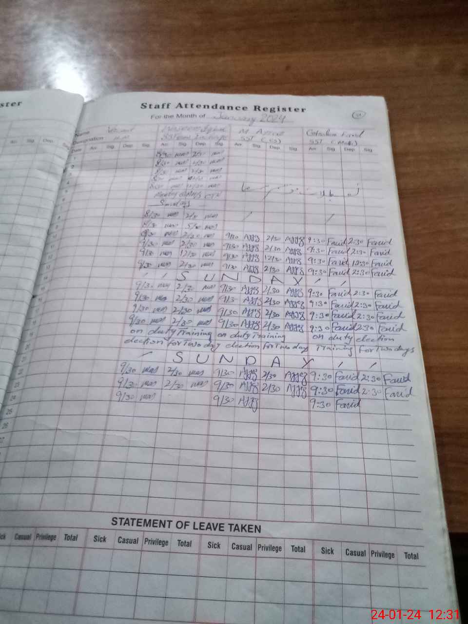 | 31**** | Mu**** Sa**** | 2 | 2 | 0 | 0 | 0 | 0 | 0 | 0 | 0 | 2 | Absent (Un-Authorized) | |