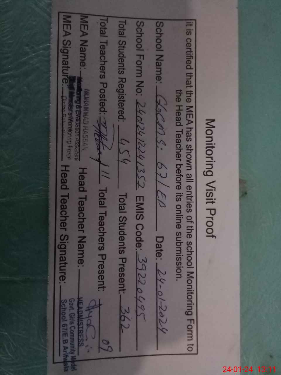 | EMIS Code: 39220495 | Name of School: GGCMS CHAK NO. 67/EB | |||