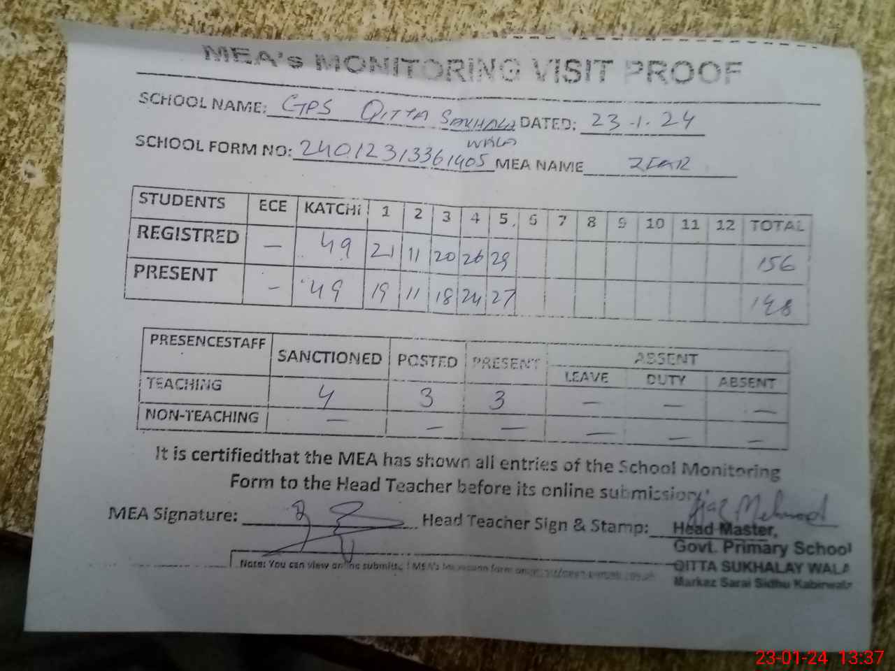 | EMIS Code: 36410656 | Name of School: GPS QITTA SUKHALAY WALA | |||