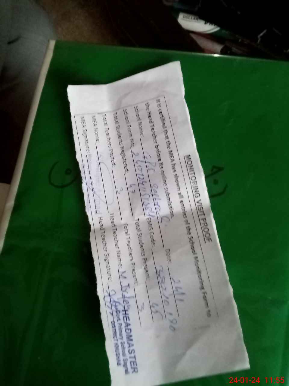 | Attendance Register | Head Teacher | MEA with School | Visit Proof |