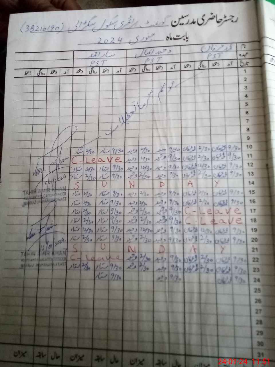 | Name: Mu**** Ir**** Designation: (School Headmaster's/Headmistress's) PST Phone/Cell Number: 03**** |