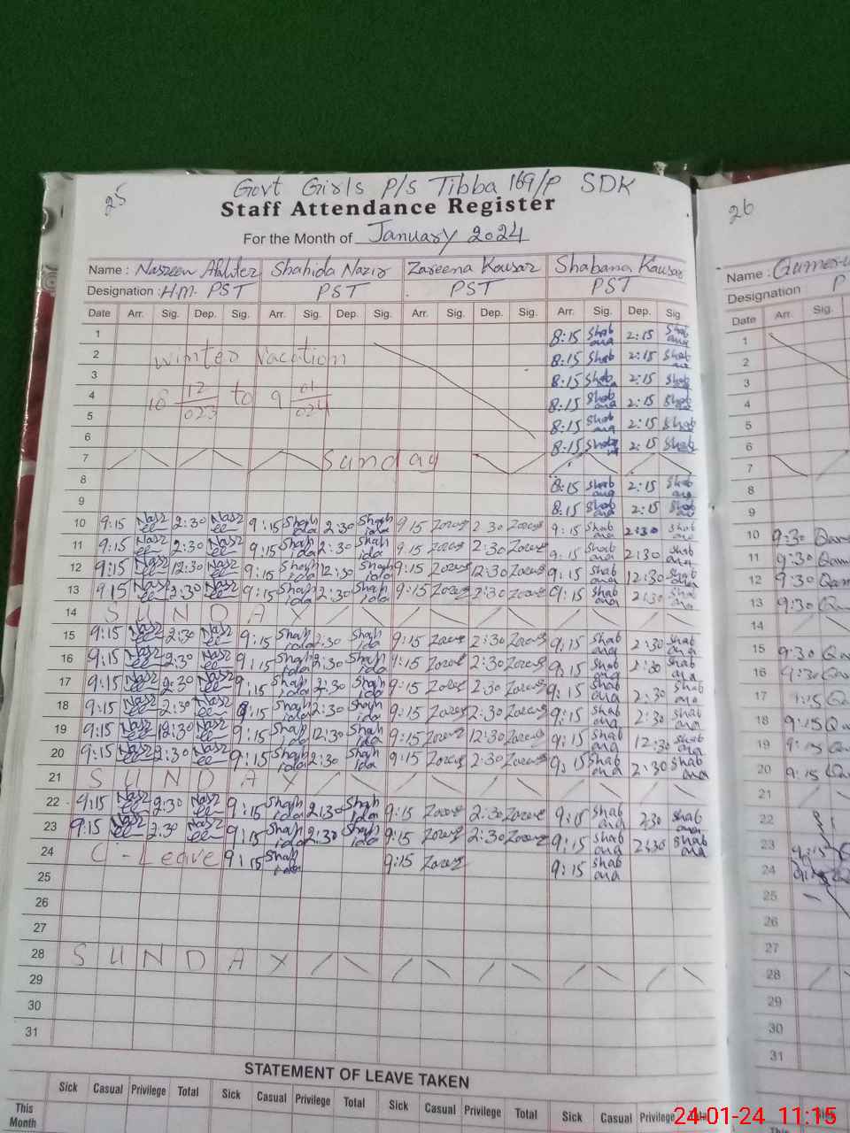 | 31**** | Na**** Ak**** | 1 | 0 | 0 | 0 | 0 | 0 | 0 | 0 | 0 | 0 | Casual | |