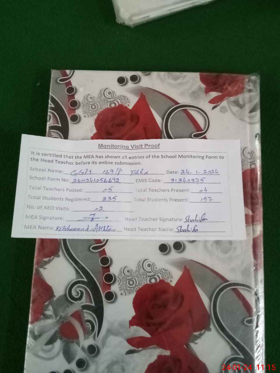| Attendance Register | Head Teacher | MEA with School | Visit Proof |