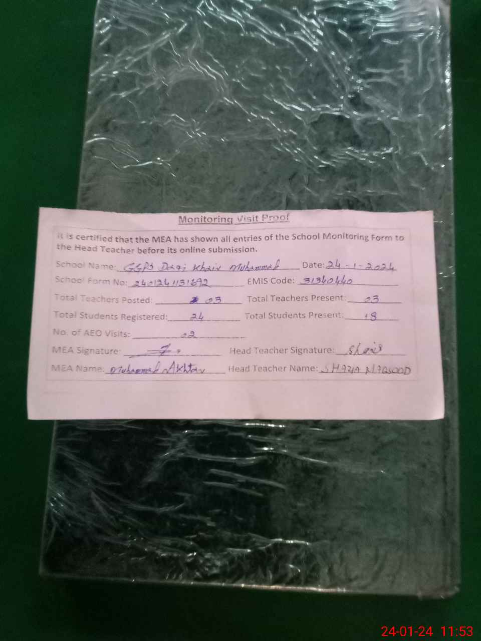 | EMIS Code: 31340440 | Name of School: GGPS DARI KHAIR MUHAMMAD | |||