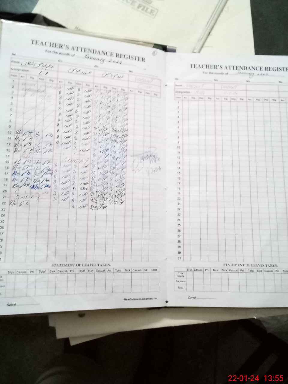 | Leave | Duty | Absent | Maternity | Medical | Ex- Pak |