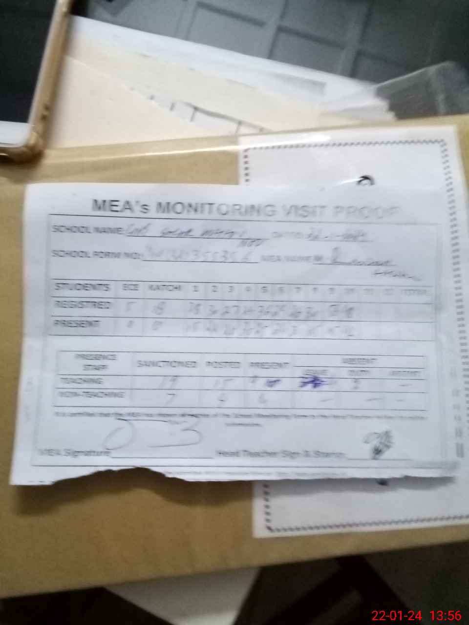 | Attendance Register | Head Teacher | MEA with School | Visit Proof |