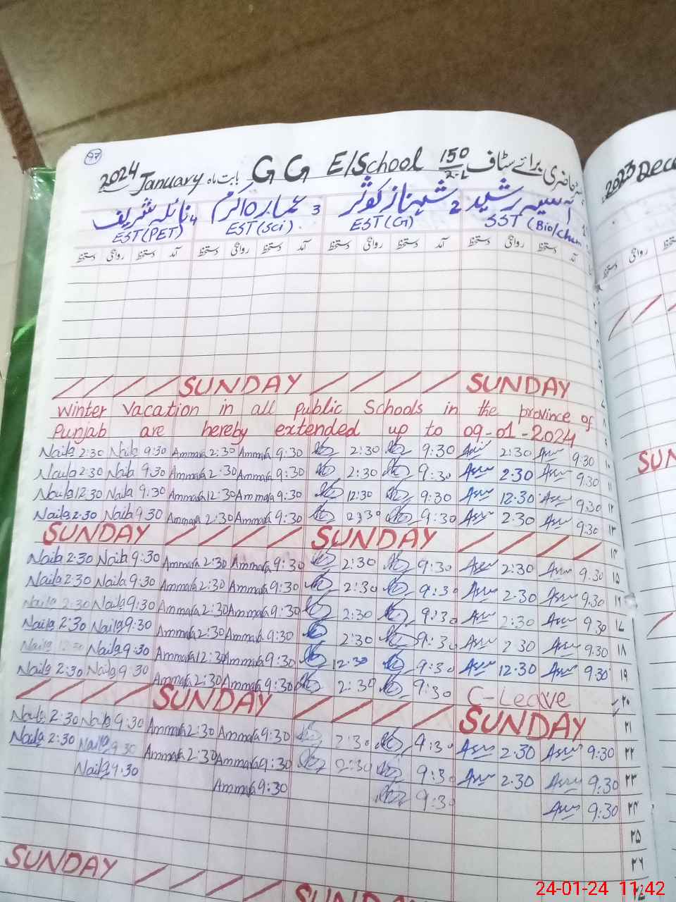 | Leave | Duty | Absent | Maternity | Medical | Ex- Pak |