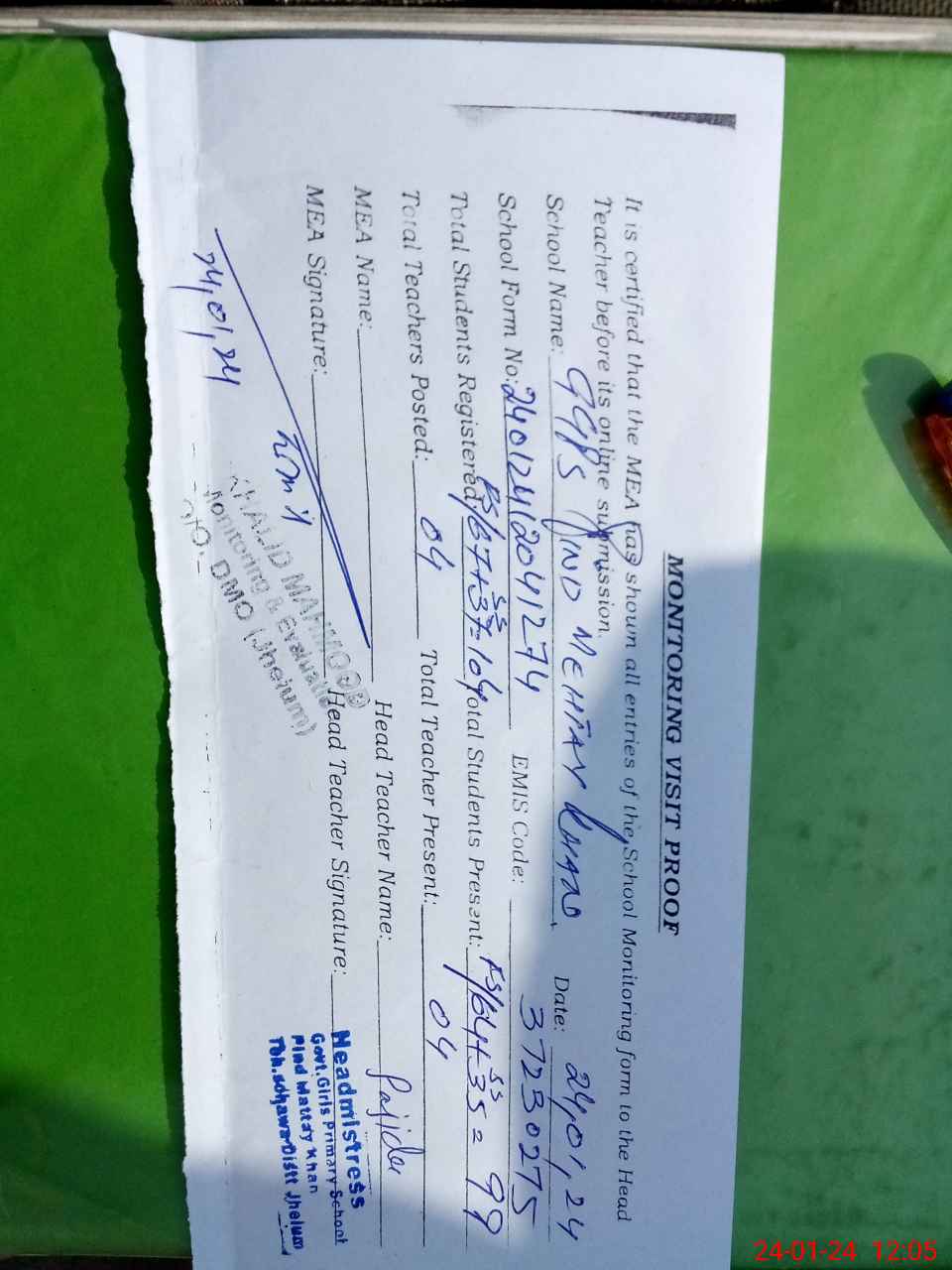 | EMIS Code: 37230275 | Name of School: GGPS PIND MATAY KHAN | |||