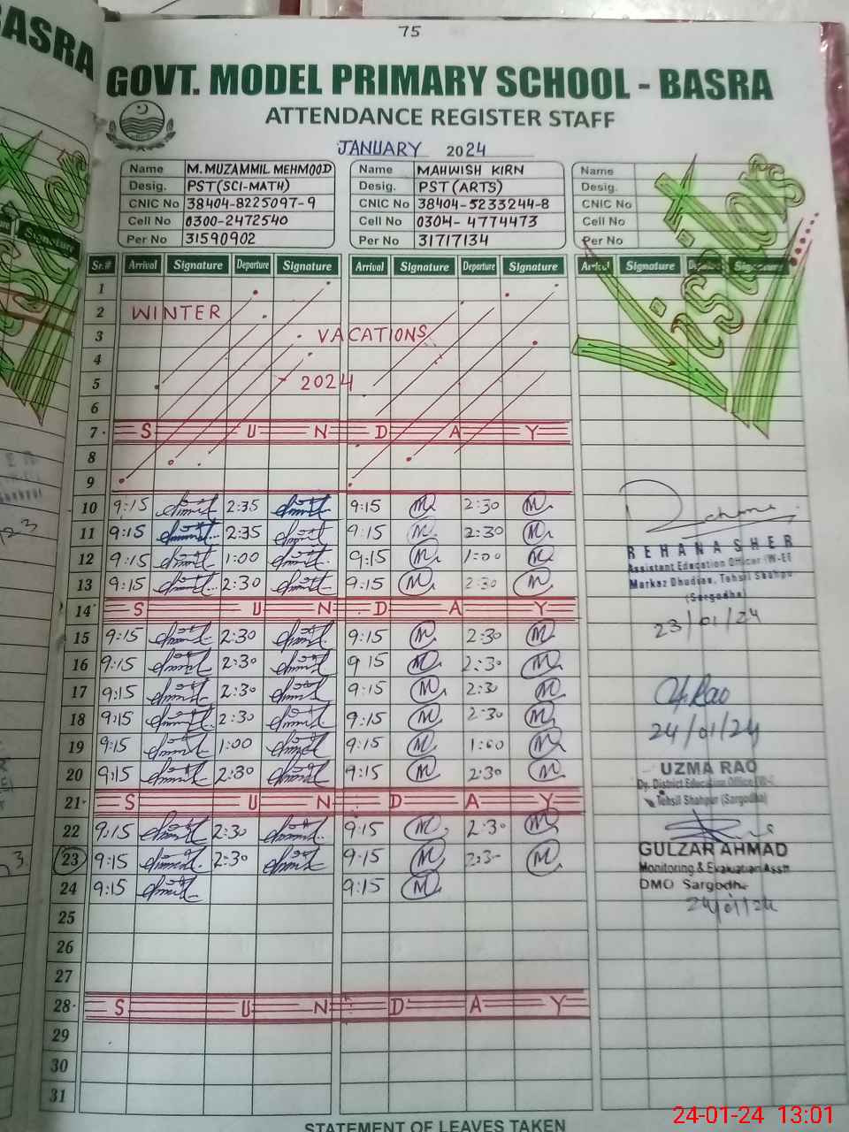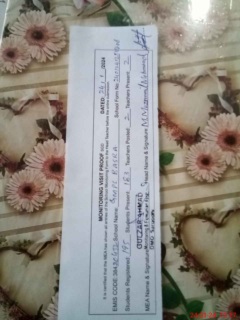| Name: MU**** MU**** Designation: (School Headmaster's/Headmistress's) PST Phone/Cell Number: 03**** |