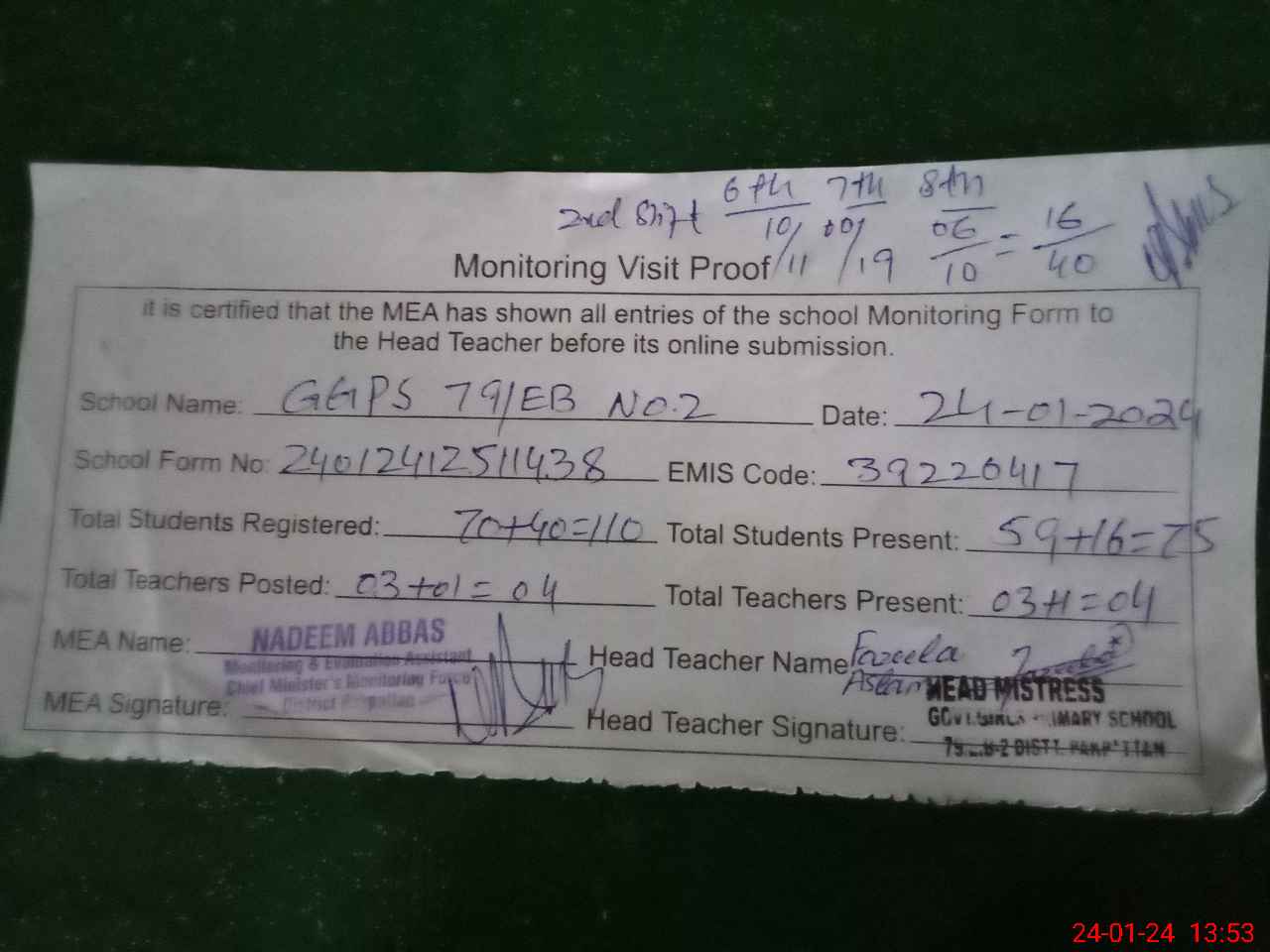 | EMIS Code: 39220417 | Name of School: GGPS 79 / EB NO.2 KORAN WALI BASTI P.O 69 EB | |||