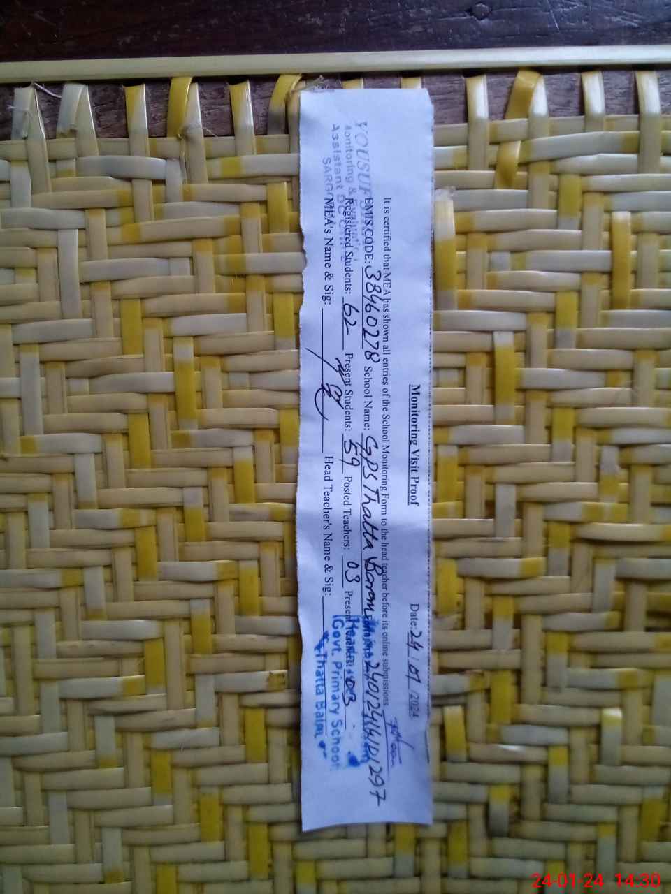 | EMIS Code: 38460278 | Name of School: GPS THATTA BERAN | |||