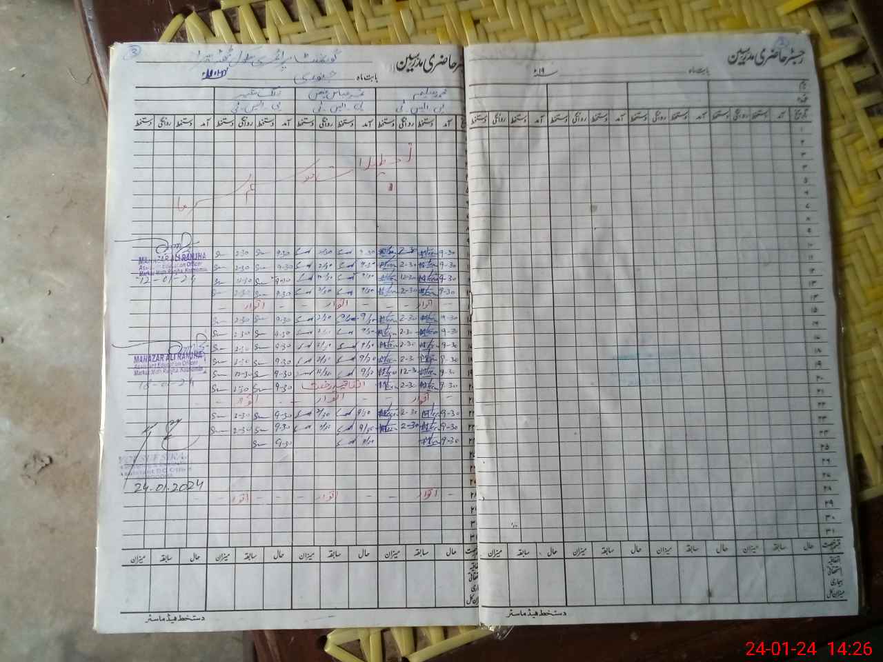 | CNIC | Full Name | Designation | R/C | Absence During Last Calender Month |