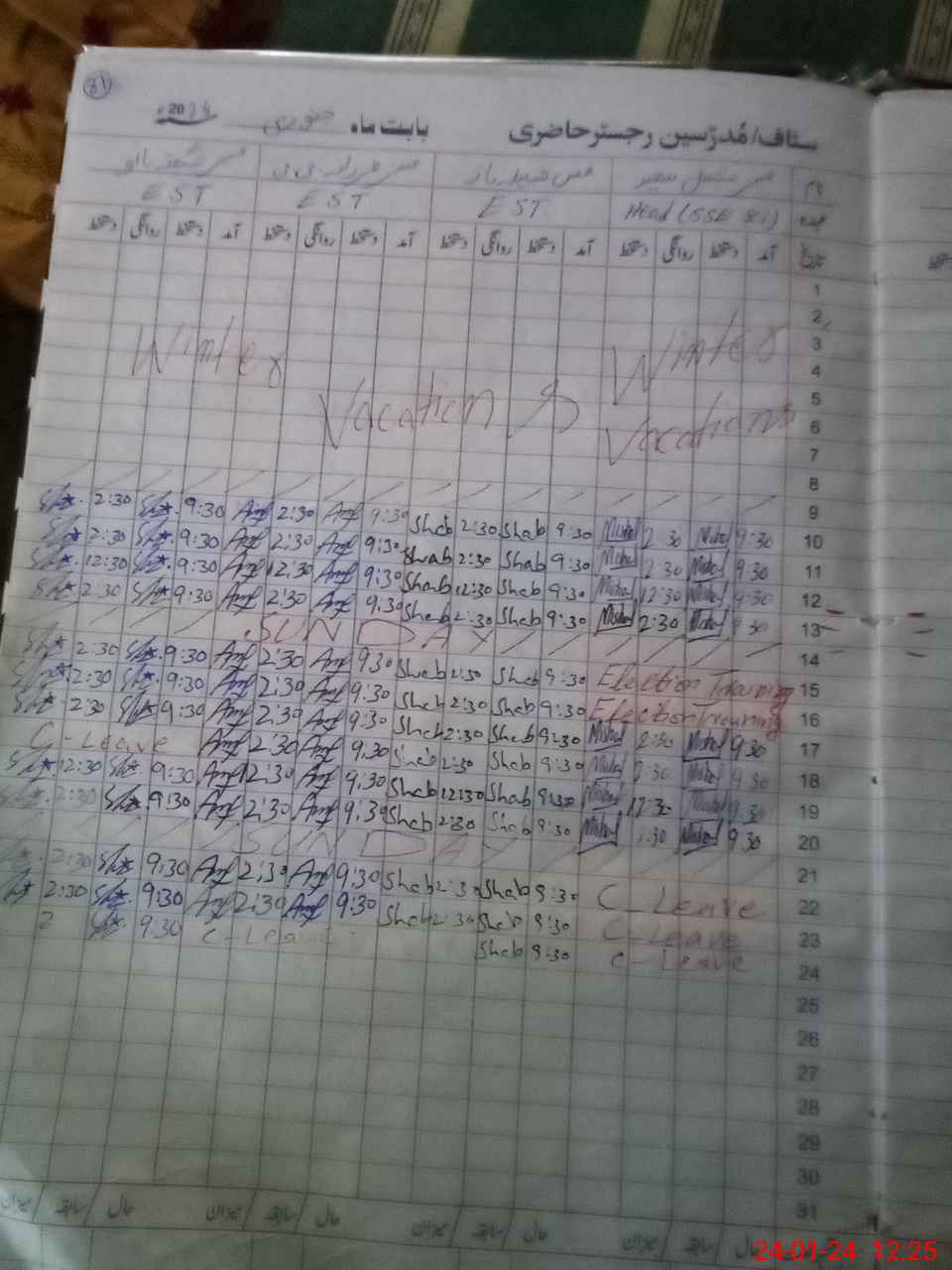 | CNIC | Full Name | Designation | R/C | Absence During Last Calender Month |