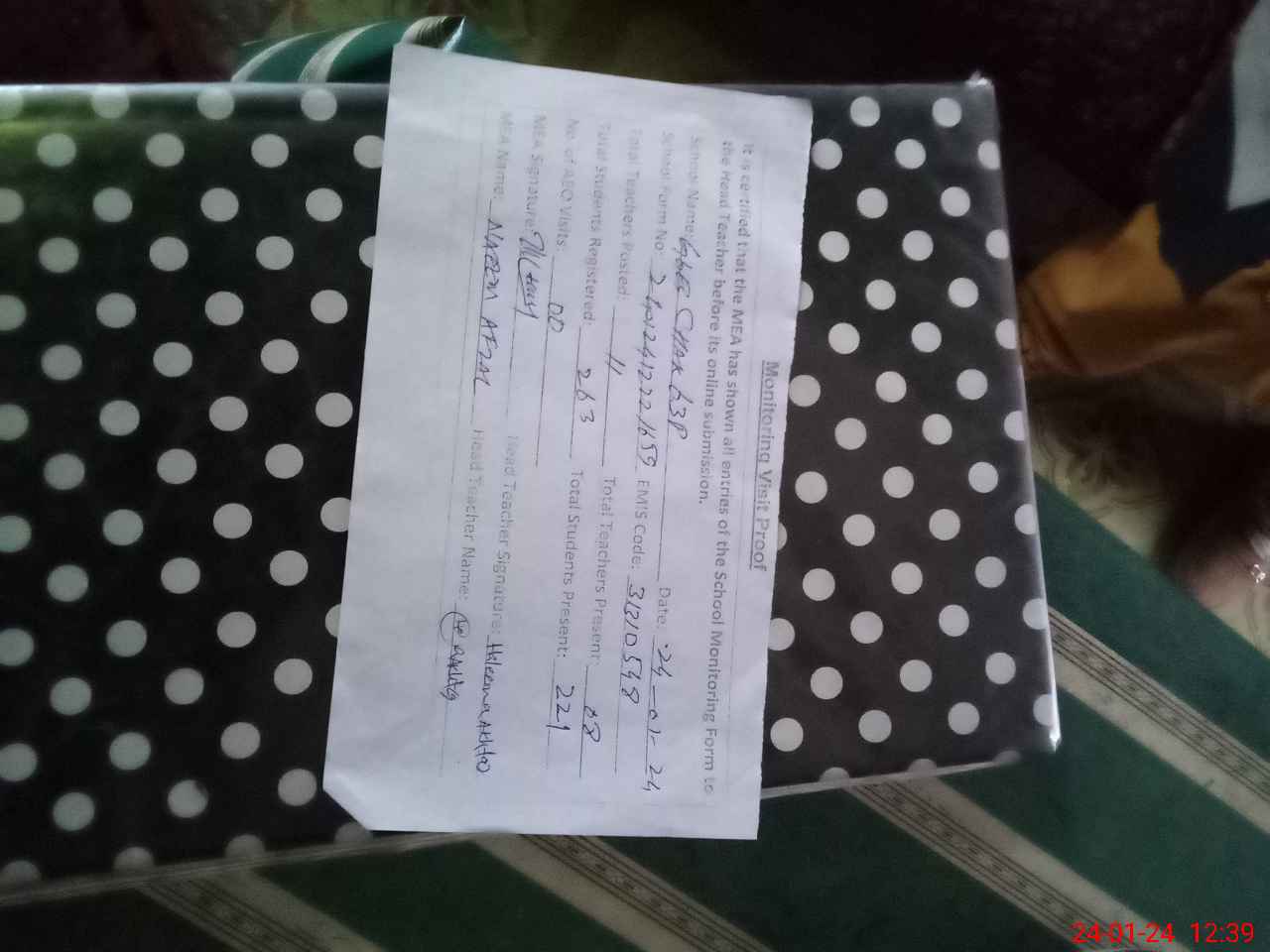 | Attendance Register | Head Teacher | MEA with School | Visit Proof |