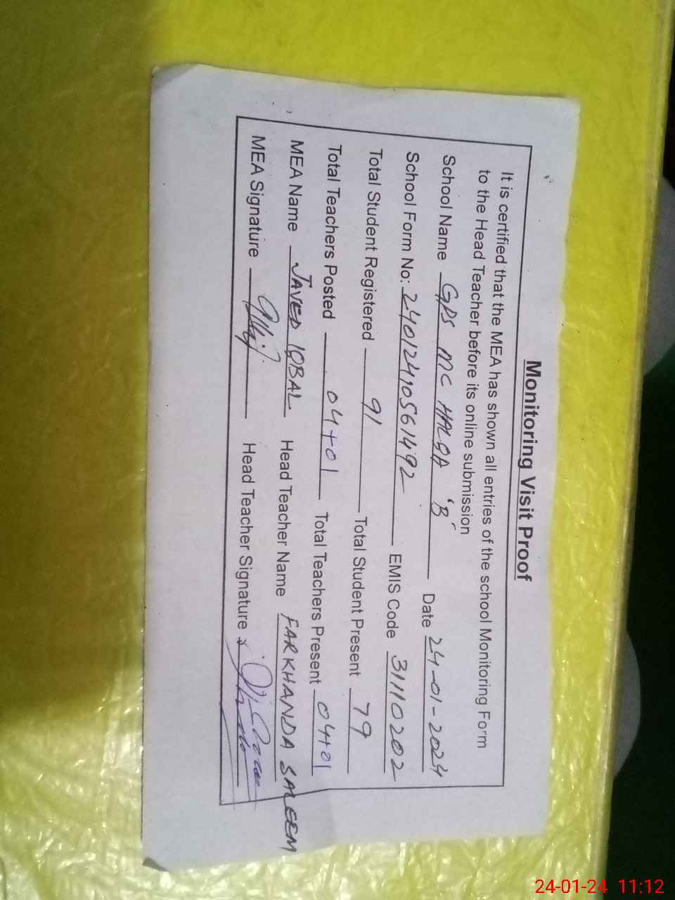 | EMIS Code: 31110202 | Name of School: GPS MC HALQA - B BAHAWALNAGAR | |||