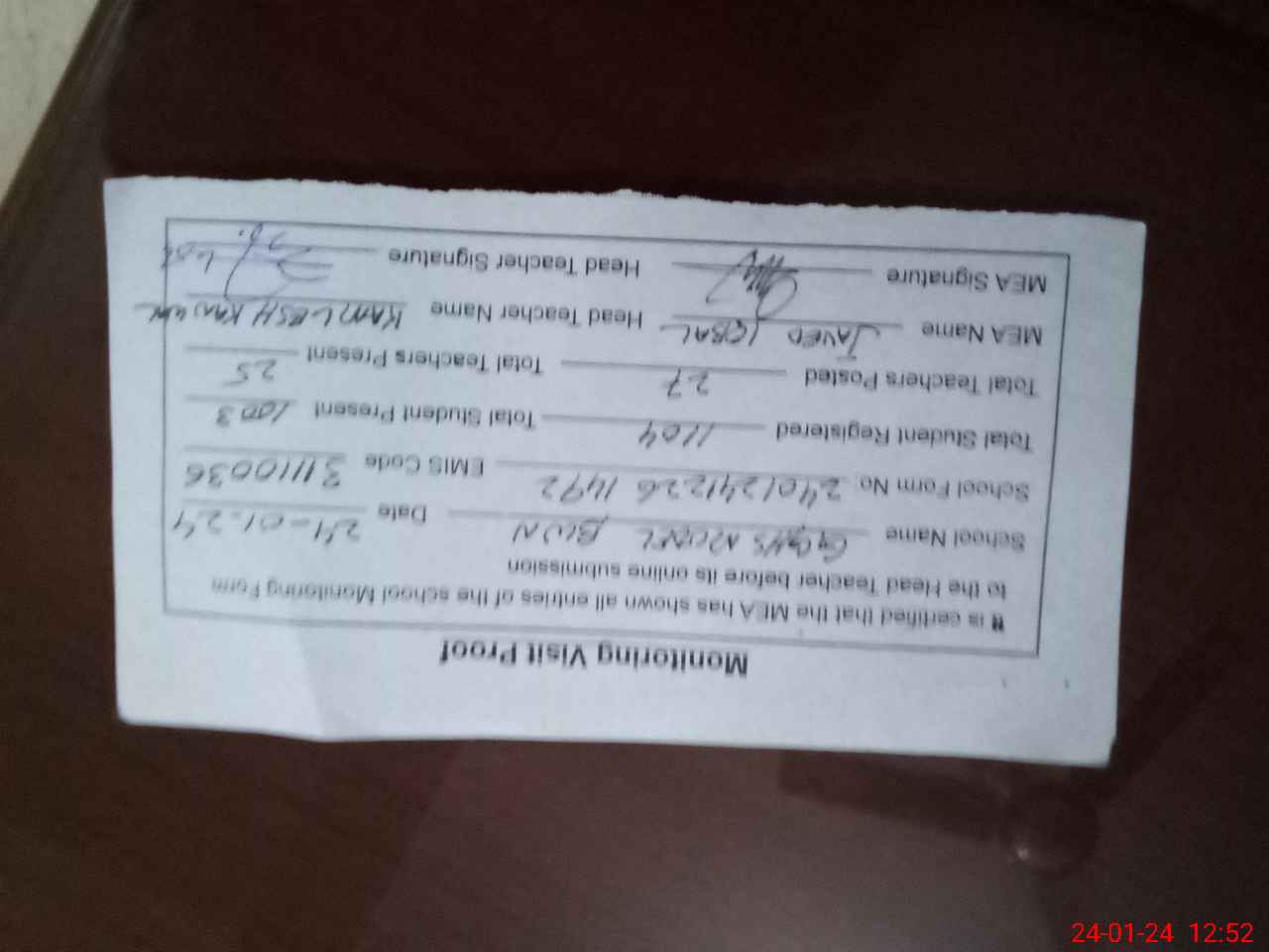| Certified that this School was Inspected by the Undersigned MEA/DMO Today and the Information Stated Above is as Per Record. | |||||