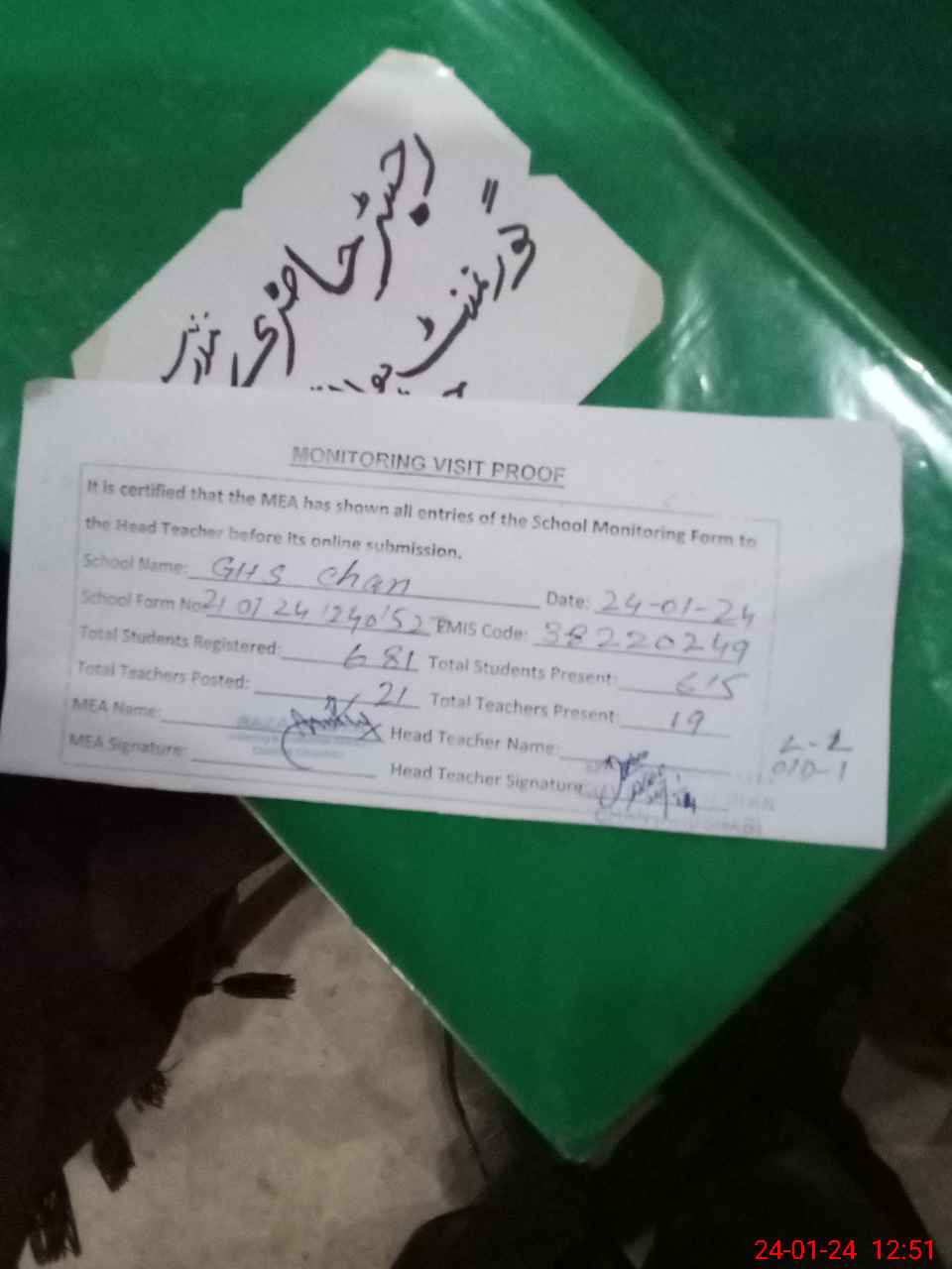 | EMIS Code: 38220249 | Name of School: GHS CHAN | |||