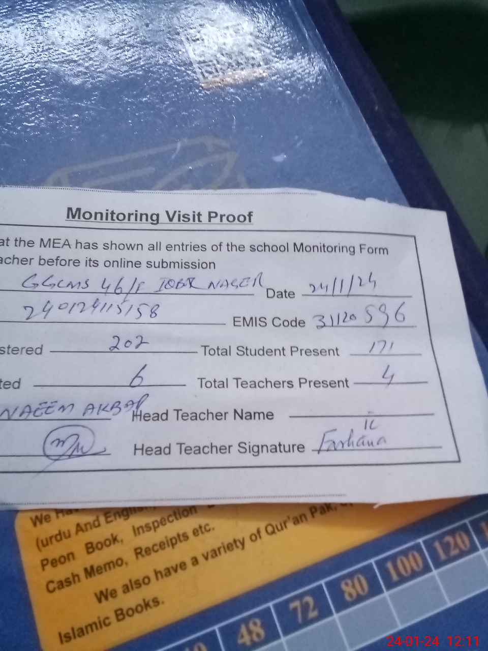 | EMIS Code: 31120596 | Name of School: GGCMS 46/F IQBAL NAGAR | |||