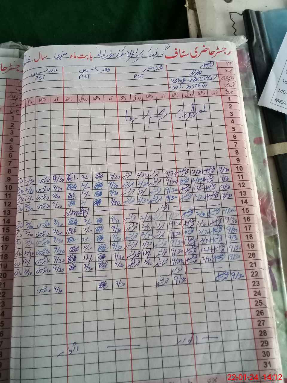 | Name: Mu**** Ba**** Designation: (School Headmaster's/Headmistress's) PST Phone/Cell Number: 03**** |