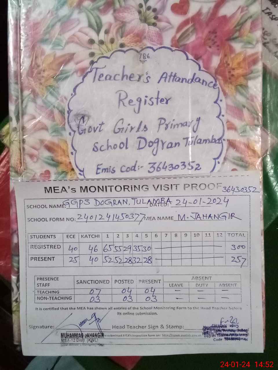 | EMIS Code: 36430352 | Name of School: GGPS DOGRAN, TULAMBA | |||