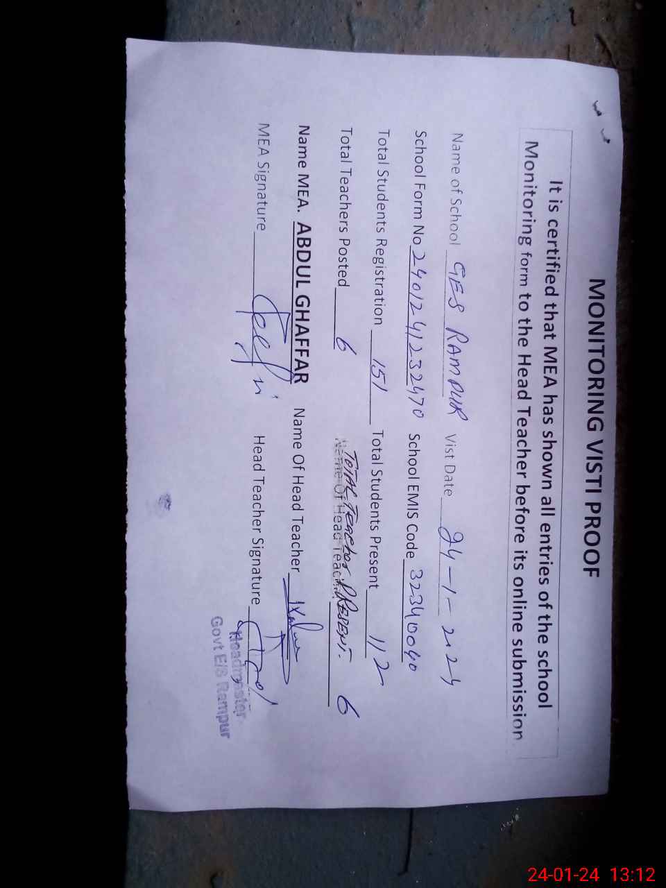 | EMIS Code: 32340040 | Name of School: GES RAM PUR | |||