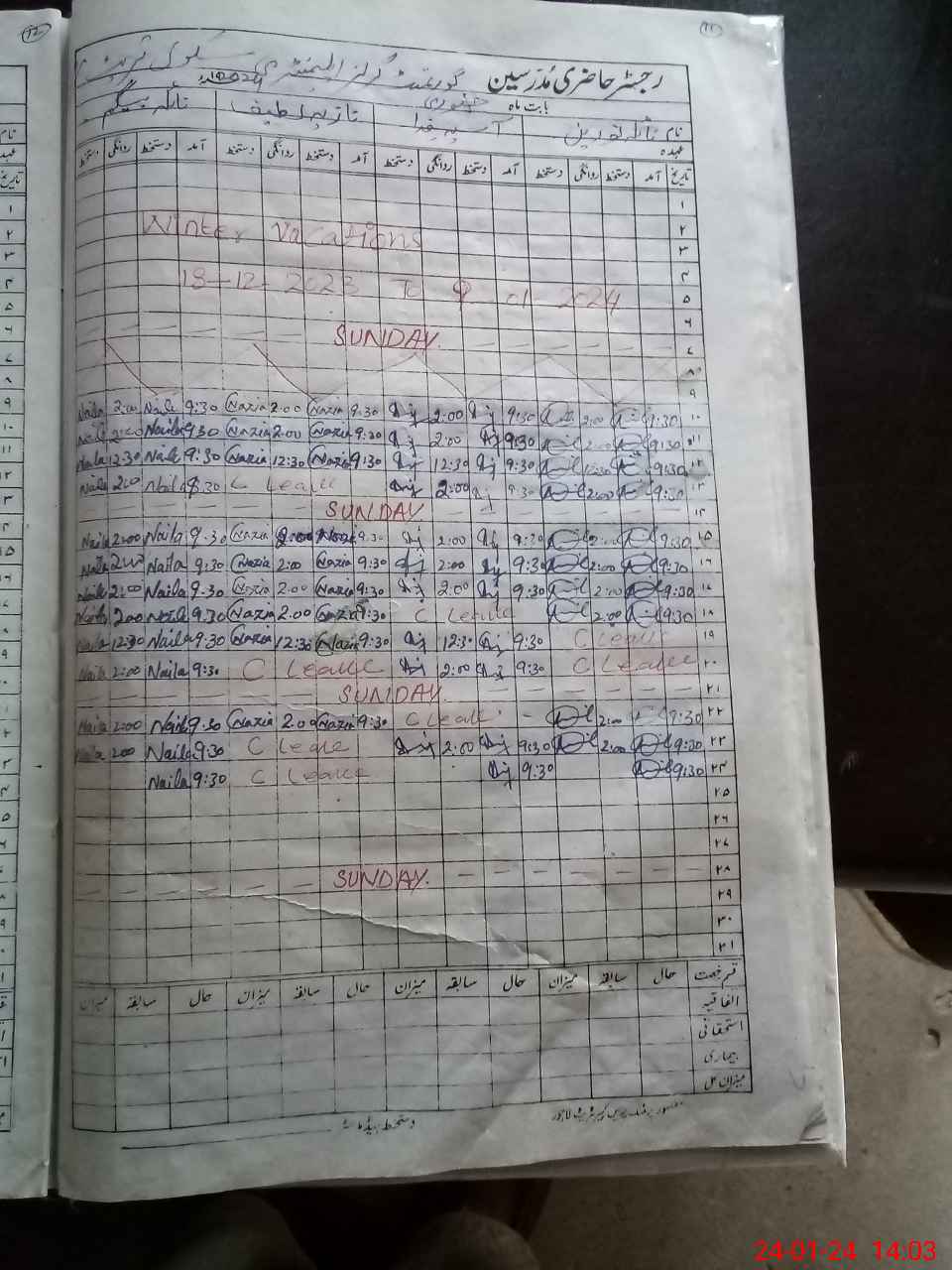 | CNIC | Full Name | Designation | R/C | Absence During Last Calender Month |
