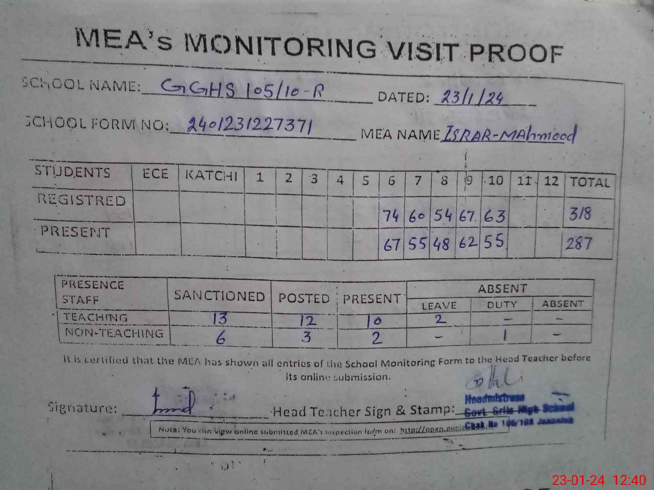 | EMIS Code: 36440056 | Name of School: GGHS 105/10-R, JAHANIAN | |||