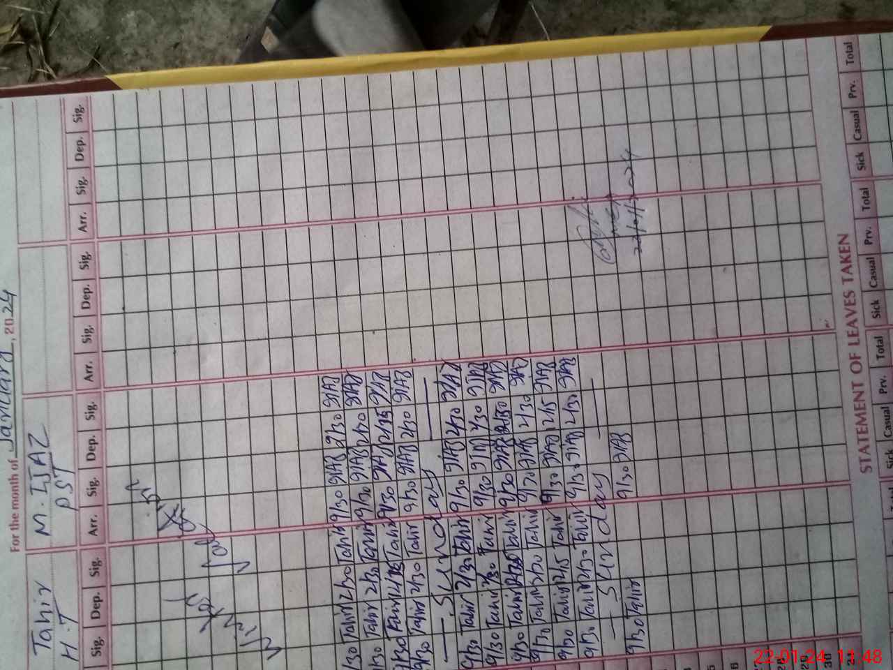 | CNIC | Full Name | Designation | R/C | Absence During Last Calender Month |