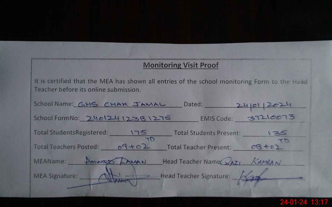 | EMIS Code: 37210073 | Name of School: GHS CHAK JAMAL | |||