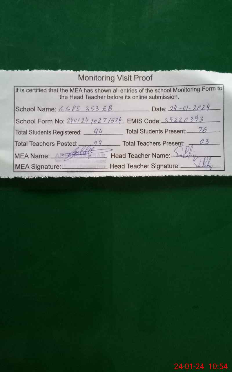 | EMIS Code: 39220393 | Name of School: GGPS 353 EB ARIFWALA | |||