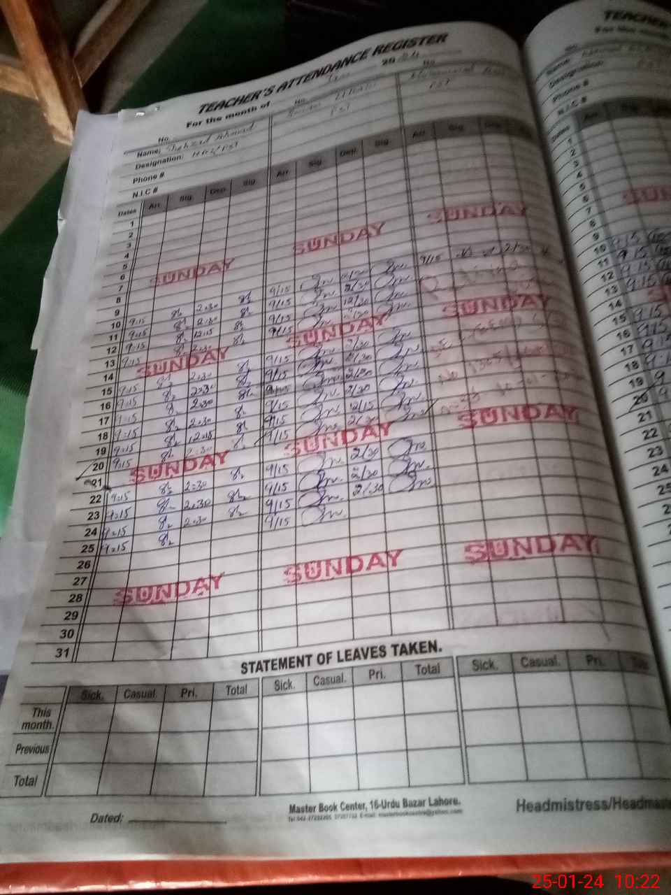 | Name: Na**** Ah**** Designation: (School Headmaster's/Headmistress's) PST Phone/Cell Number: 03**** |