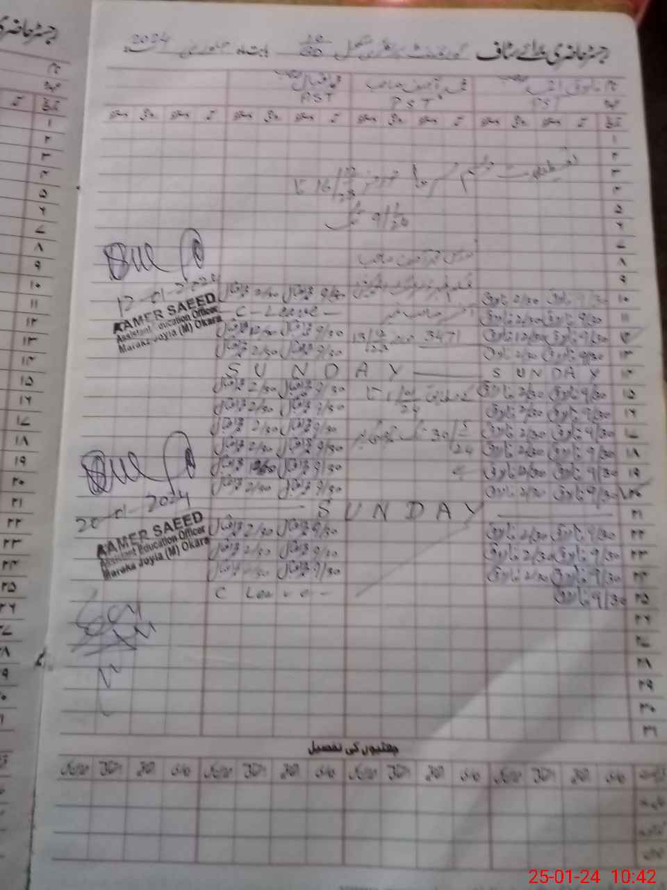 | CNIC | Full Name | Designation | R/C | Absence During Last Calender Month |