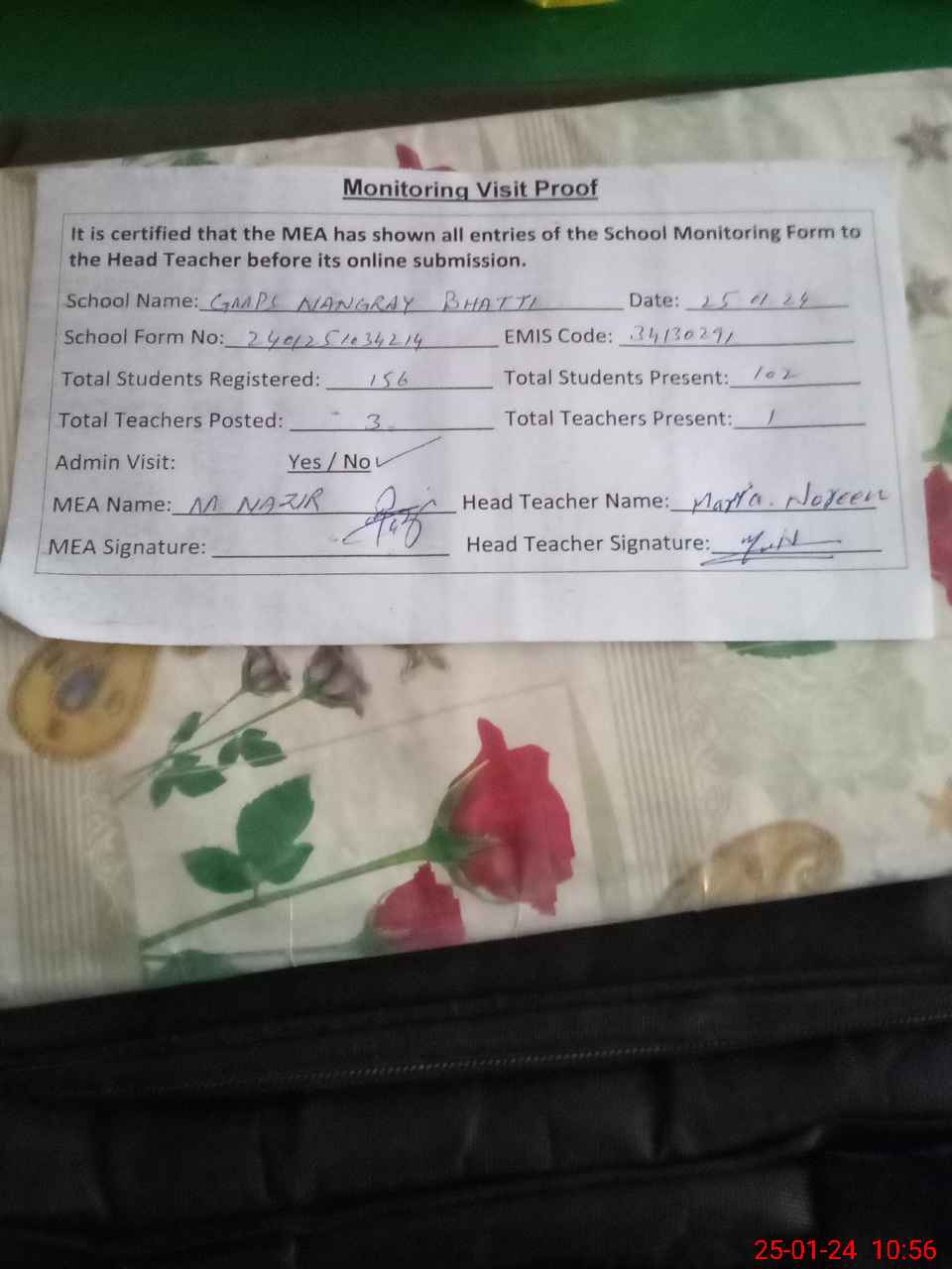 | Attendance Register | Head Teacher | MEA with School | Visit Proof |