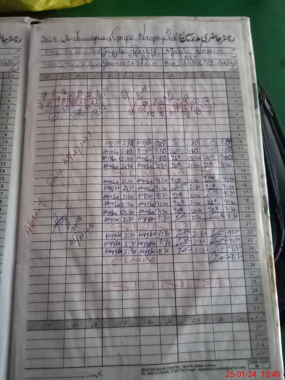 | CNIC | Full Name | Designation | R/C | Absence During Last Calender Month |