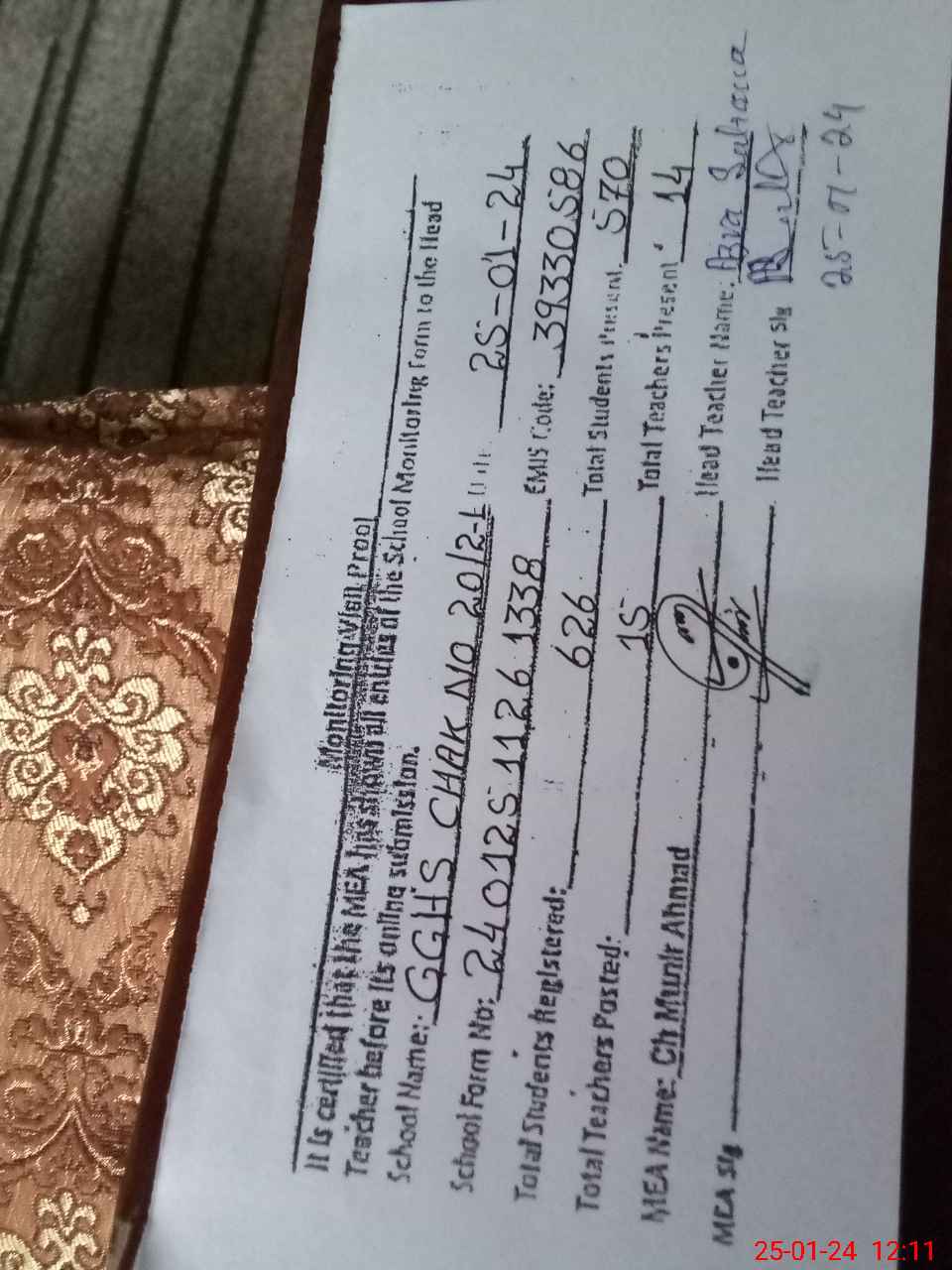 | EMIS Code: 39330586 | Name of School: GGHS CHAK 20/2-L | |||