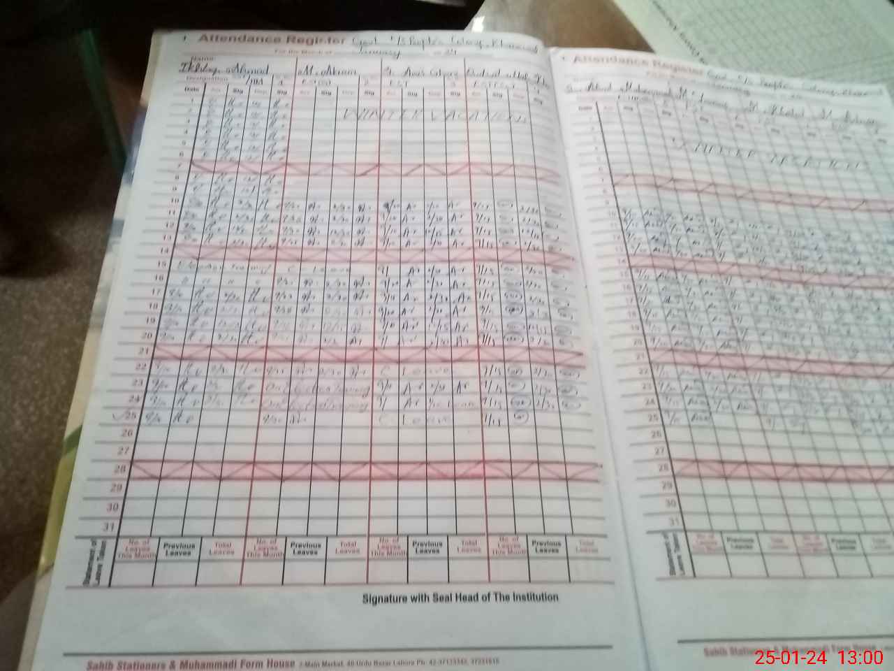 | CNIC | Full Name | Designation | R/C | Absence During Last Calender Month |