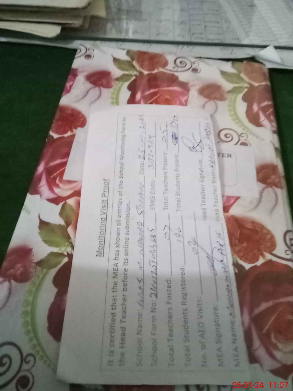 | Attendance Register | Head Teacher | MEA with School | Visit Proof |