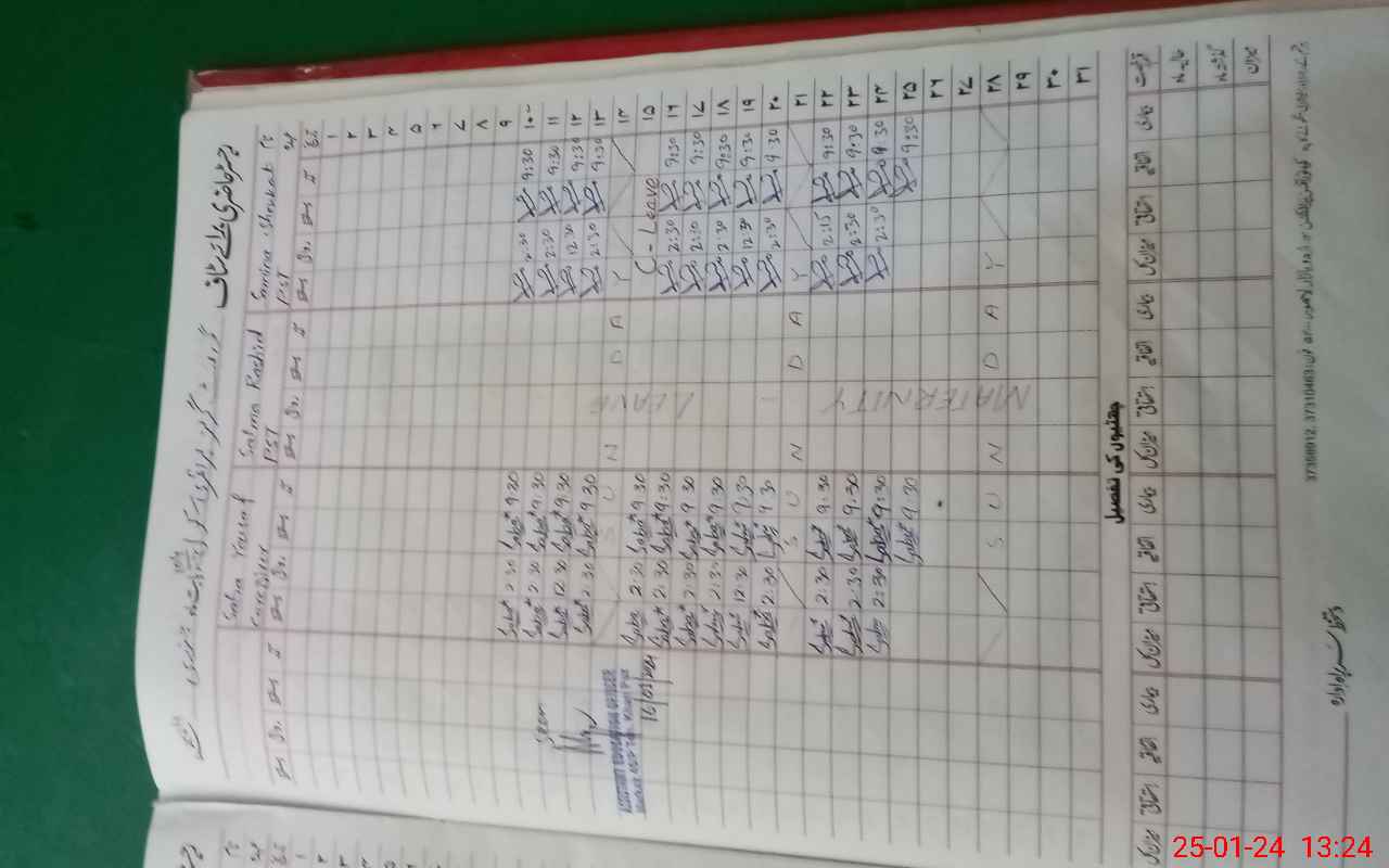 | 31**** | Sa**** Ra**** | 2 | 2 | 0 | 0 | 0 | 0 | 0 | 0 | 0 | 0 | 0 | Maternity |