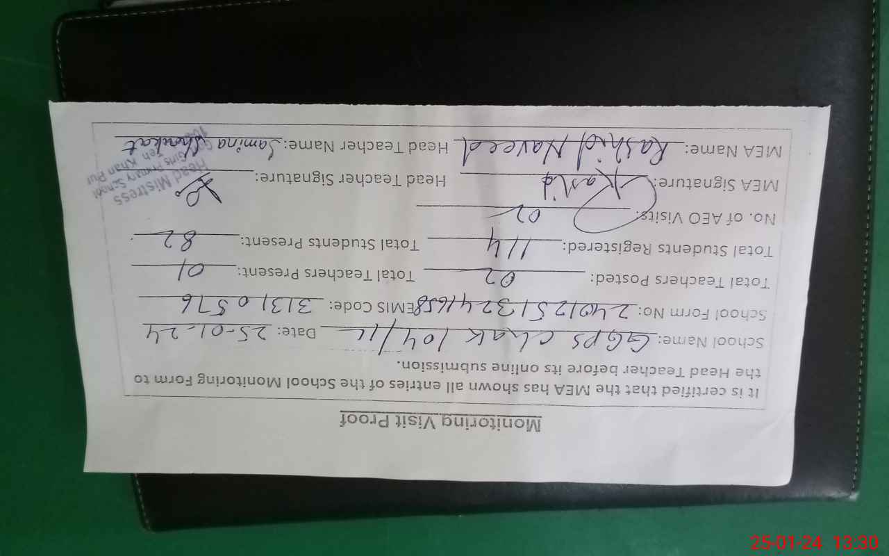 | Attendance Register | Head Teacher | MEA with School | Visit Proof |