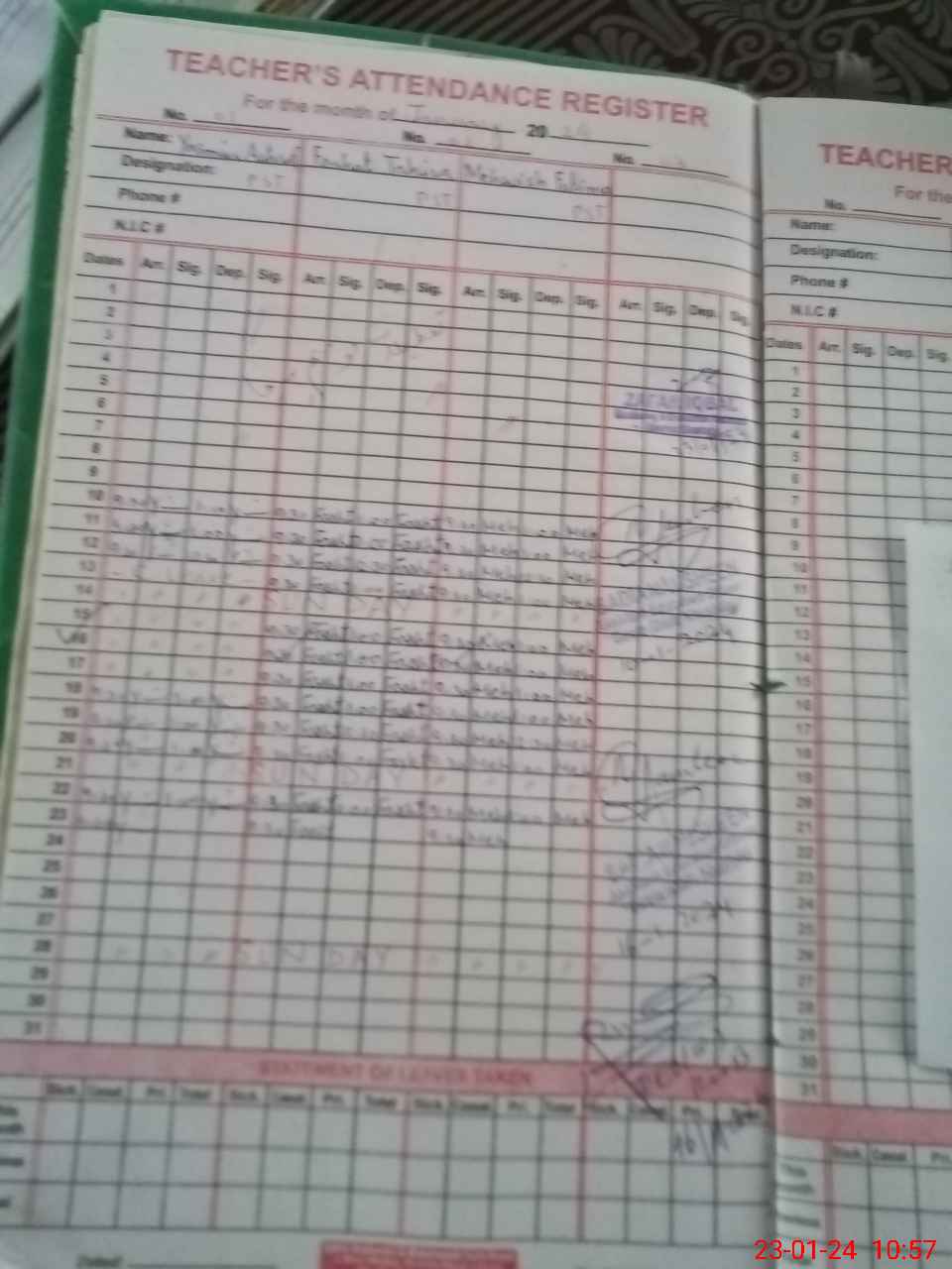 | CNIC | Full Name | Designation | R/C | Absence During Last Calender Month |