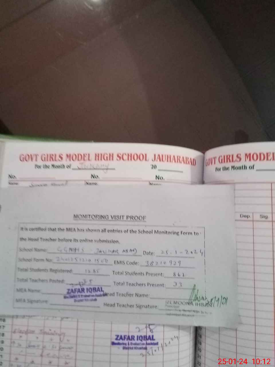 | EMIS Code: 38210929 | Name of School: GGHS MODEL JOUHAR ABAD | |||
