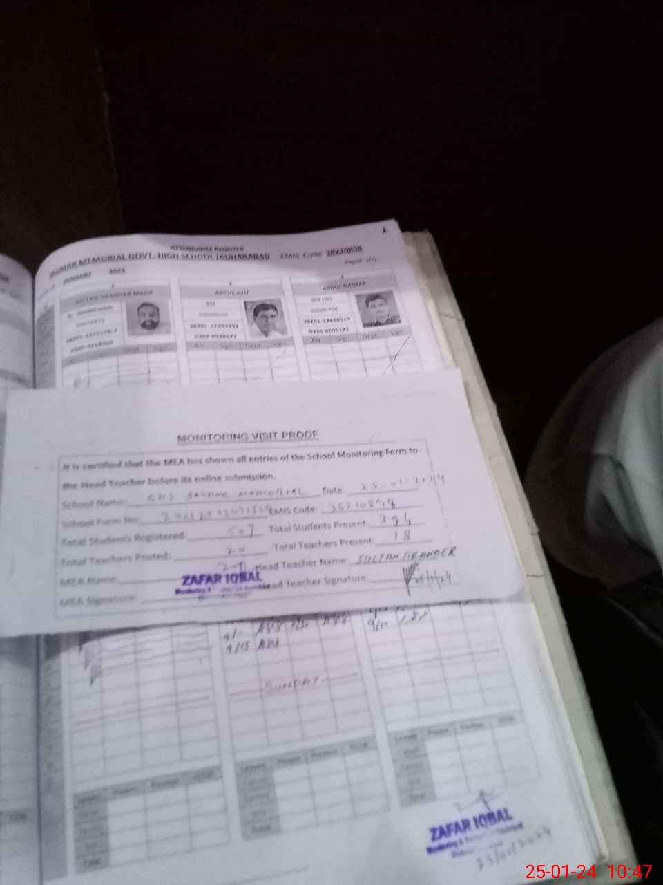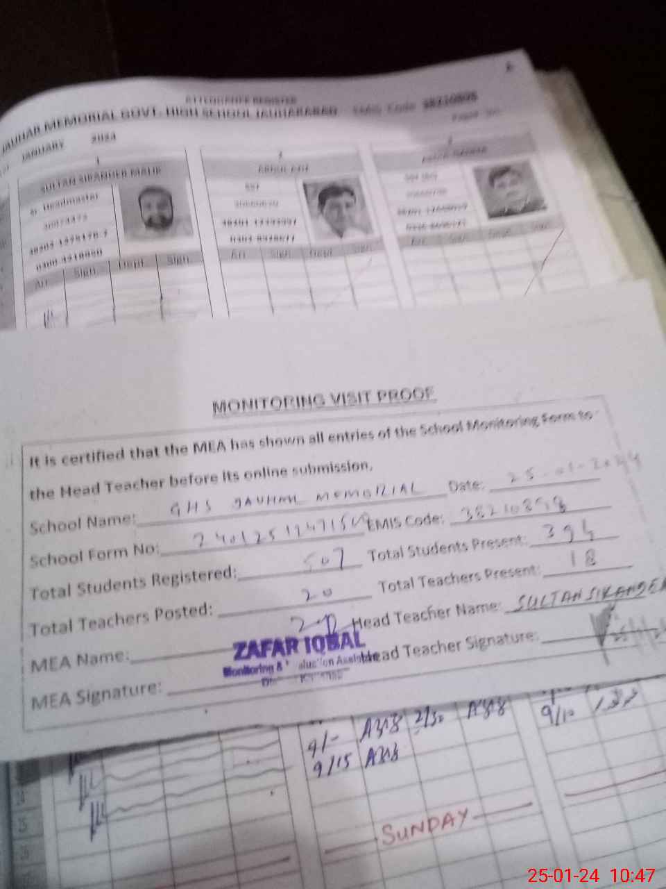 | Attendance Register | Head Teacher | MEA with School | Visit Proof |