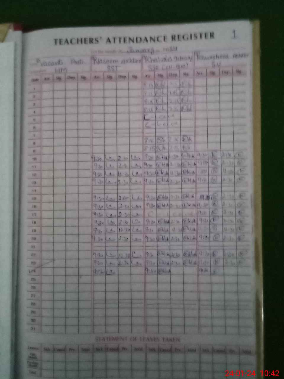 | Name: Kh**** Is**** Designation: (School Headmaster's/Headmistress's) SSE (Bio Chem) Phone/Cell Number: 03**** |