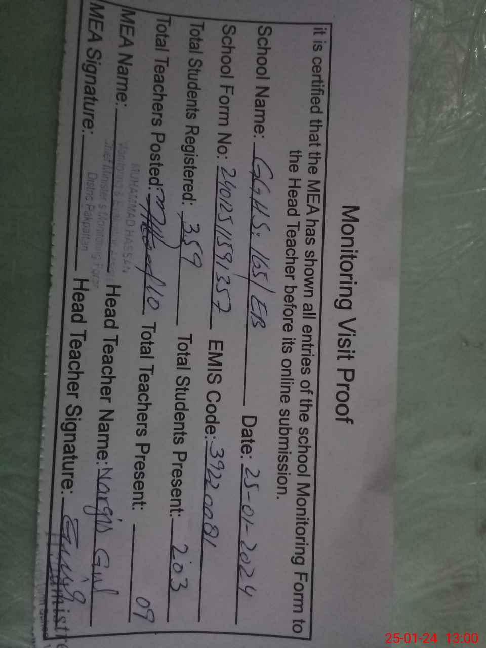 | EMIS Code: 39220081 | Name of School: GGHS 165 EB P/O 163 EB | |||